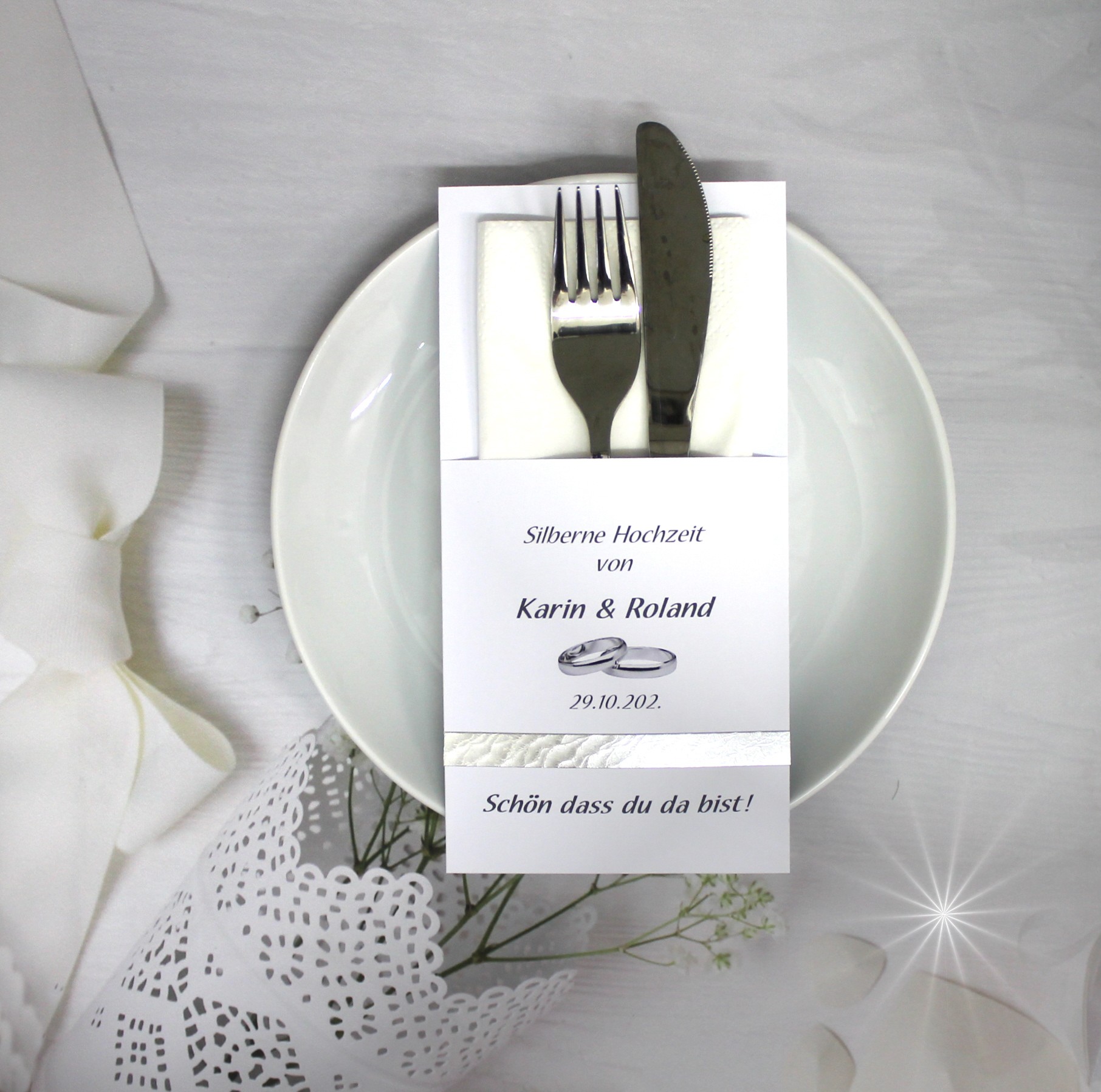 Schick und einzigartig zugleich! Unsere Bestecktaschen sind ein echter Blickfang auf jedem festlich gedeckten Tisch. Sie verbinden praktische Funktion mit stilvollem Design und eignen sich hervorragend für Ihre Silberne Hochzeit. Mit Liebe zum Detail werden unser Bestecktaschen gefertigt und schaffen eine einladende Atmosphäre für Ihre Gäste.