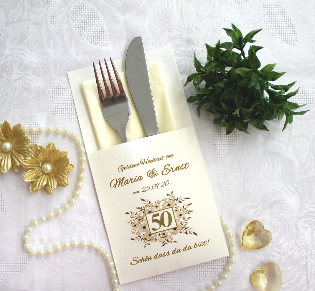 Bestecktasche, Bestecktasche Goldene Hochzeit, Goldene Hochzeit, Servietten, Tischdekoration