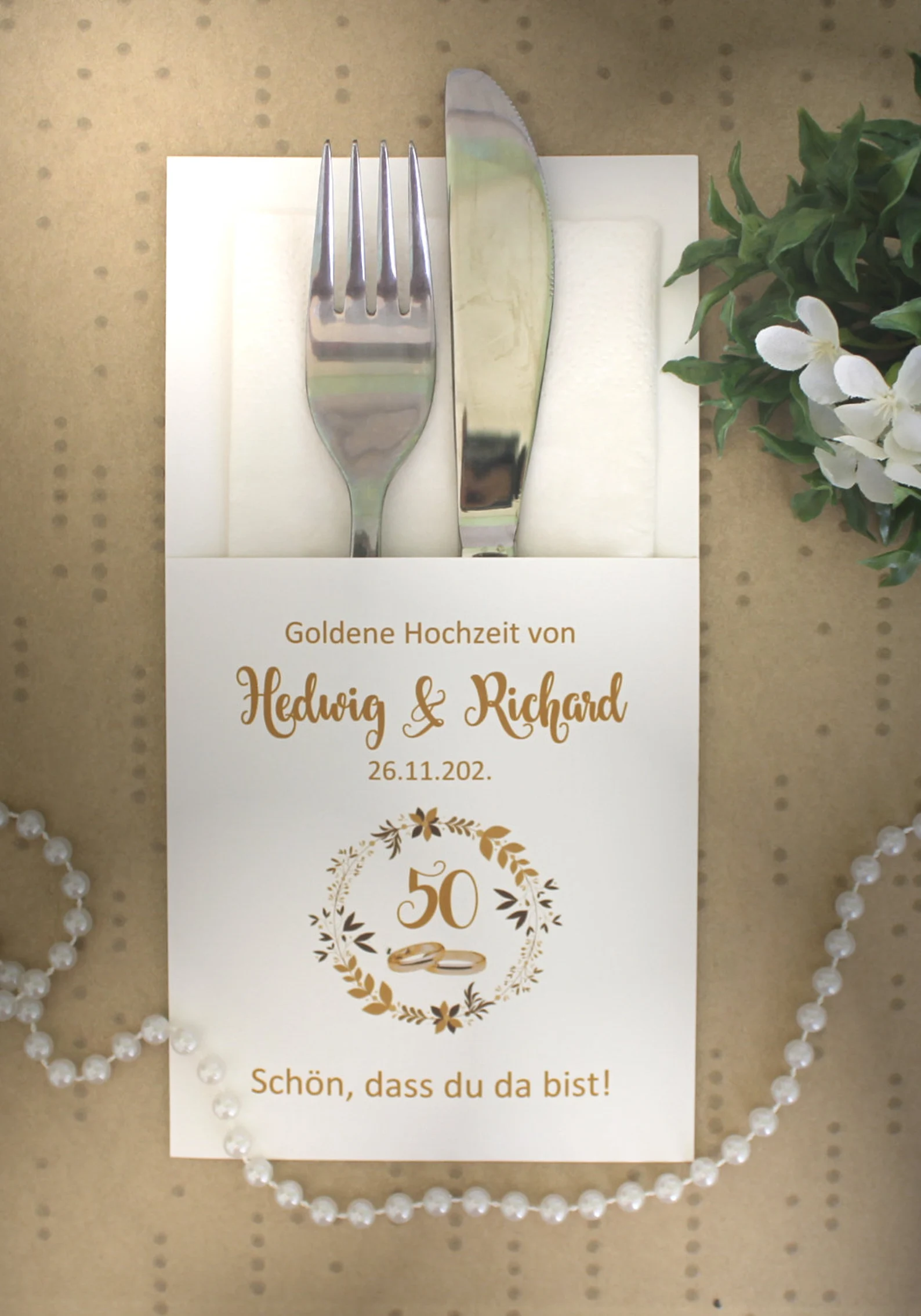 Bestecktasche, Bestecktasche Goldene Hochzeit, Goldene Hochzeit, Servietten, Tischdekoration