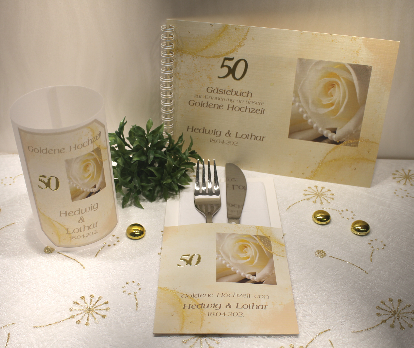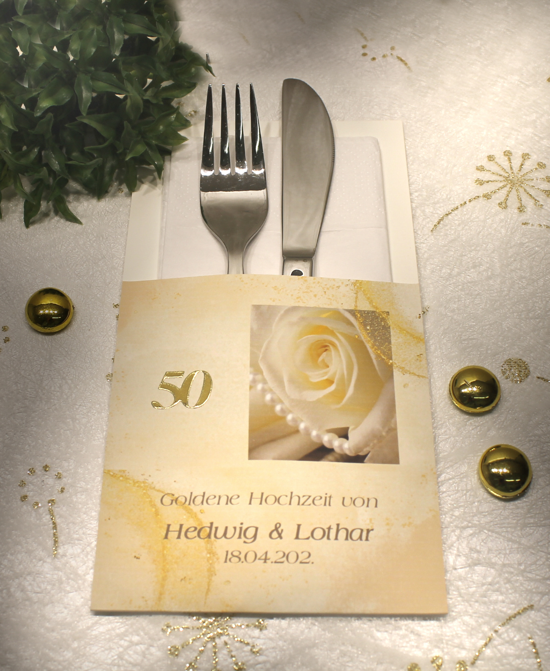 Bestecktasche, Bestecktasche Goldene Hochzeit, Goldene Hochzeit, Servietten, Tischdekoration