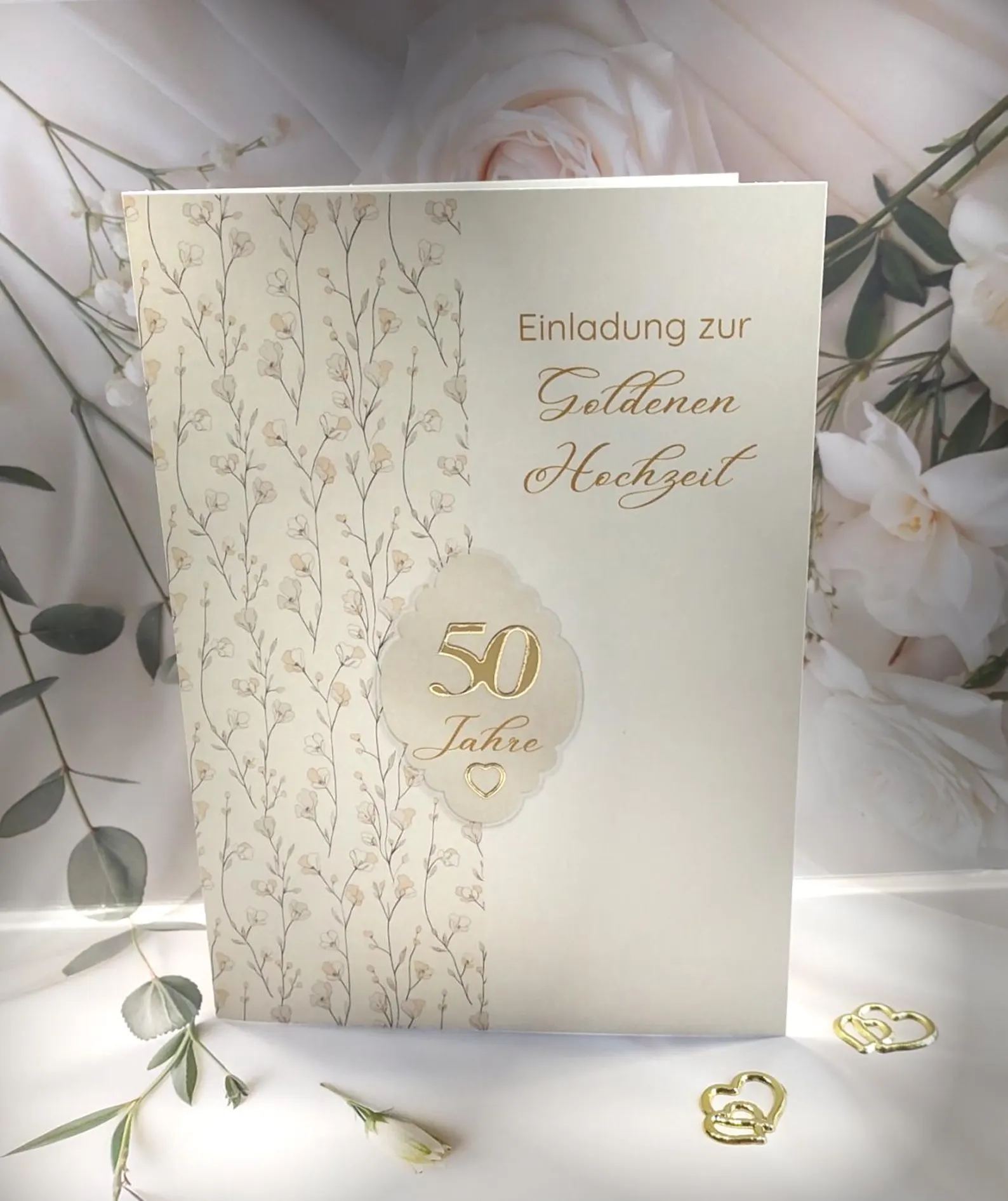 Eine wunderschöne Einladung, um Familie und Freunde stilvoll zu Ihrem Jubiläum einzuladen und diesen besonderen Meilenstein gebührend zu feiern.
