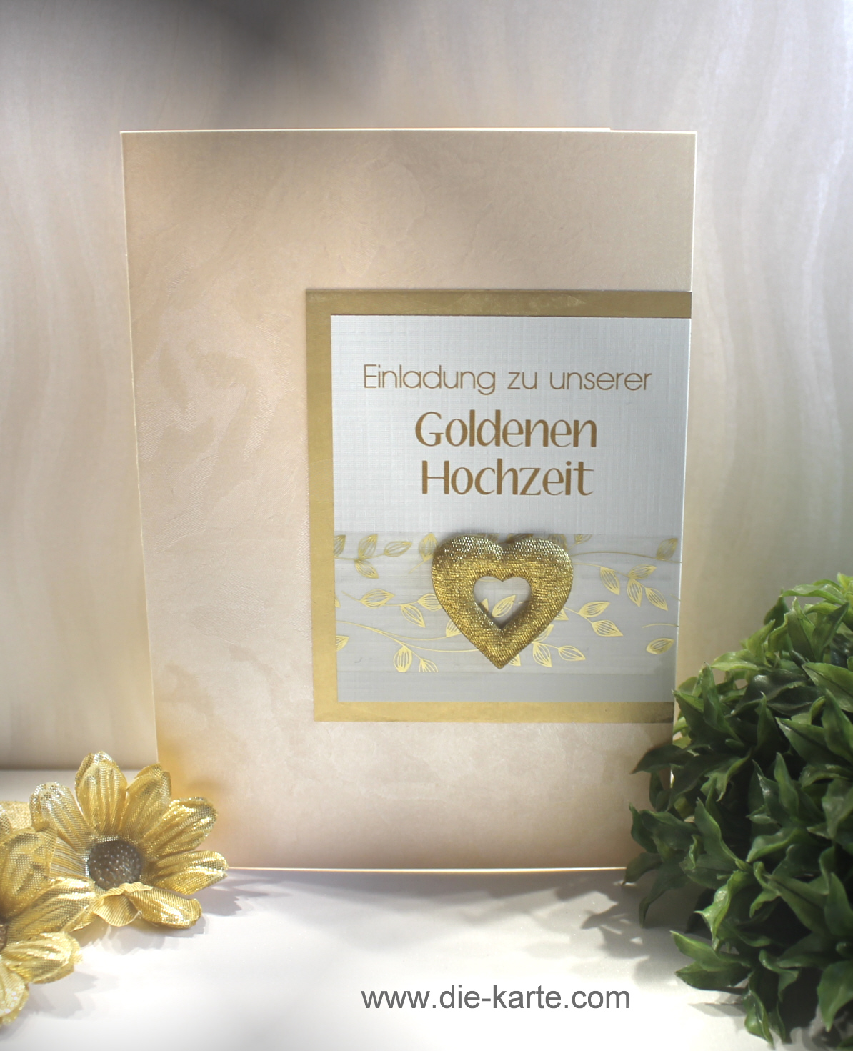Einladung zur Goldenen Hochzeit "Herz" incl. Umschlag Design 12820Einladung zur Goldenen Hochzeit „Herz“ incl. Umschlag Design 12820