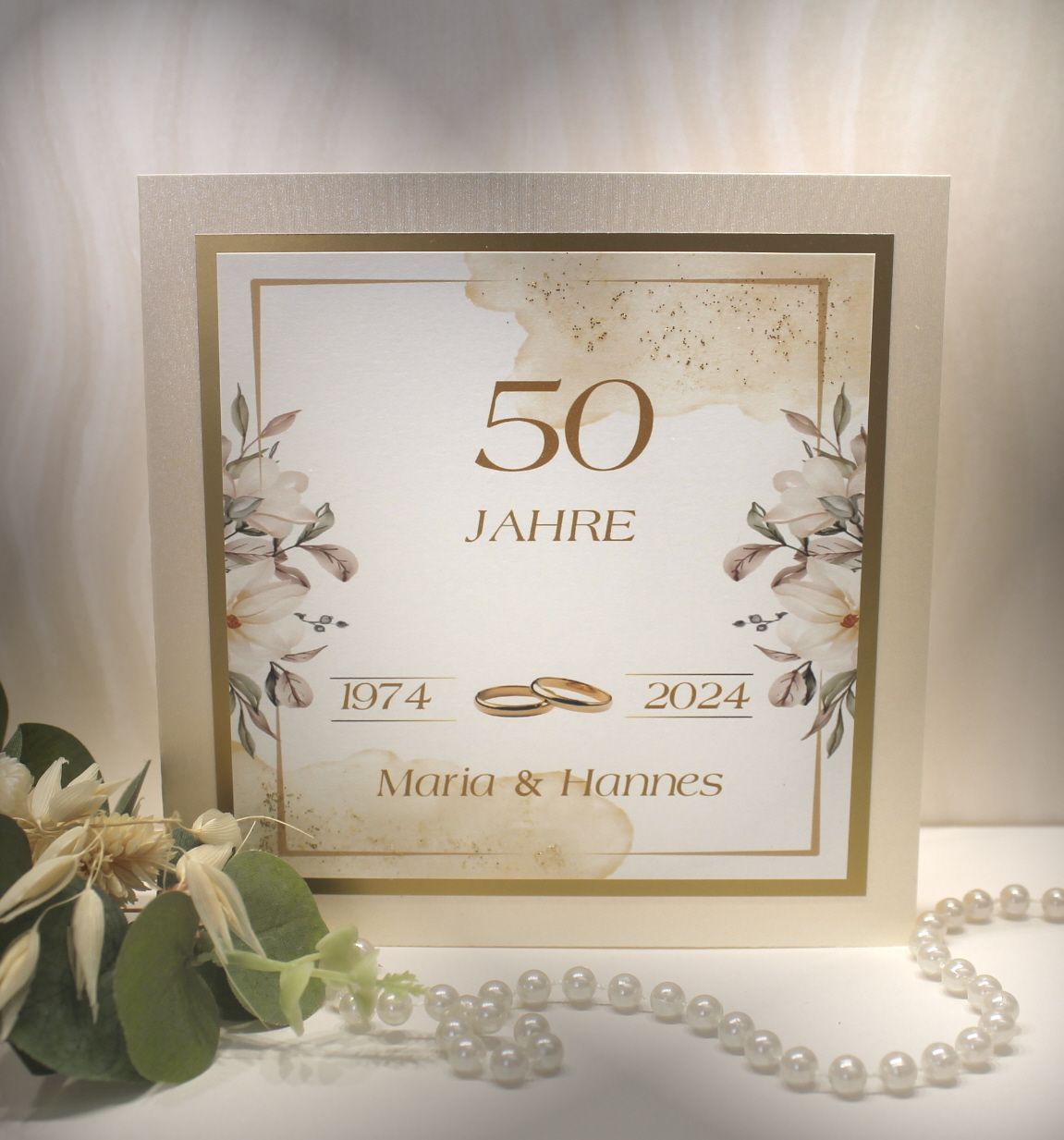 Feiern Sie 50 Jahre Liebe, Treue und gemeinsame Erinnerungen mit Stil und Eleganz.