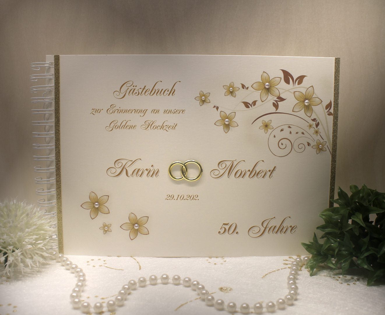 Feiern Sie ein halbes Jahrhundert voller Liebe, Glück und gemeinsamer Erinnerungen mit diesem stilvollen Gästebuch zur Goldenen Hochzeit. Es bietet den perfekten Platz, um all die lieben Worte, herzlichen Glückwünsche und persönlichen Gedanken Ihrer Gäste festzuhalten.Das edle Design mit goldenen Akzenten macht dieses Gästebuch zu einem besonderen Highlight auf jeder Feier und ist ein wertvolles Erinnerungsstück, das Sie noch viele Jahre begleiten wird.