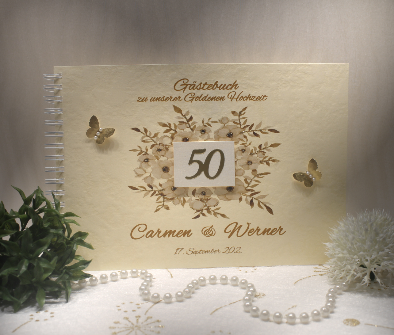 Gästebuch zur Goldenen Hochzeit „Zahl 50“ Design 12800
