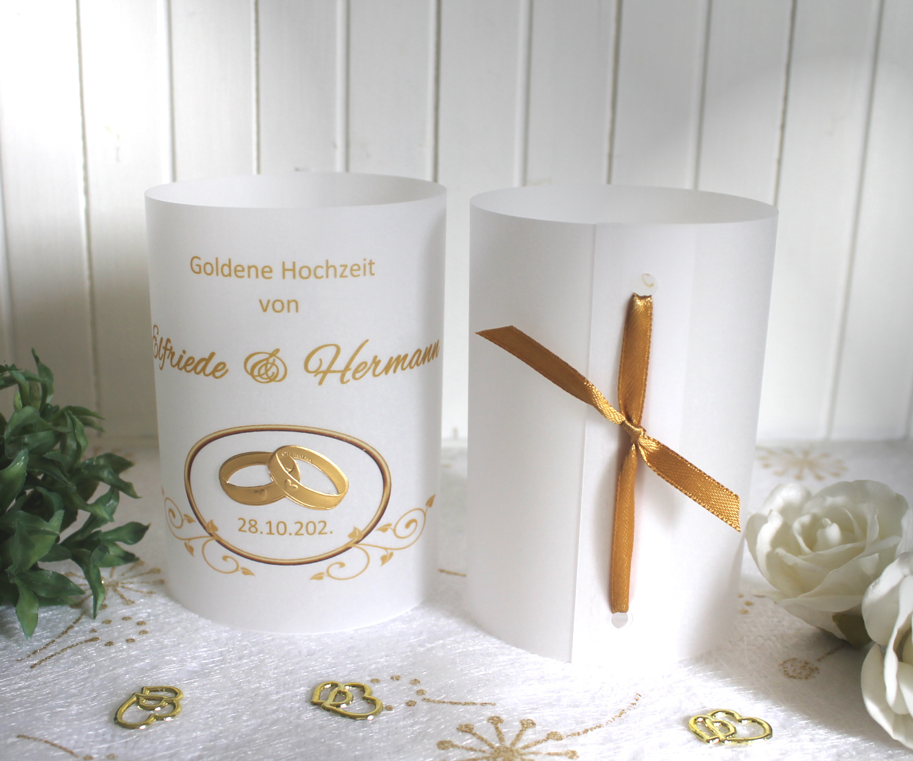 Lichthülle, Windlicht Pergament zur Goldenen Hochzeit, zum kleinen Preis!! Design 950 Ringe