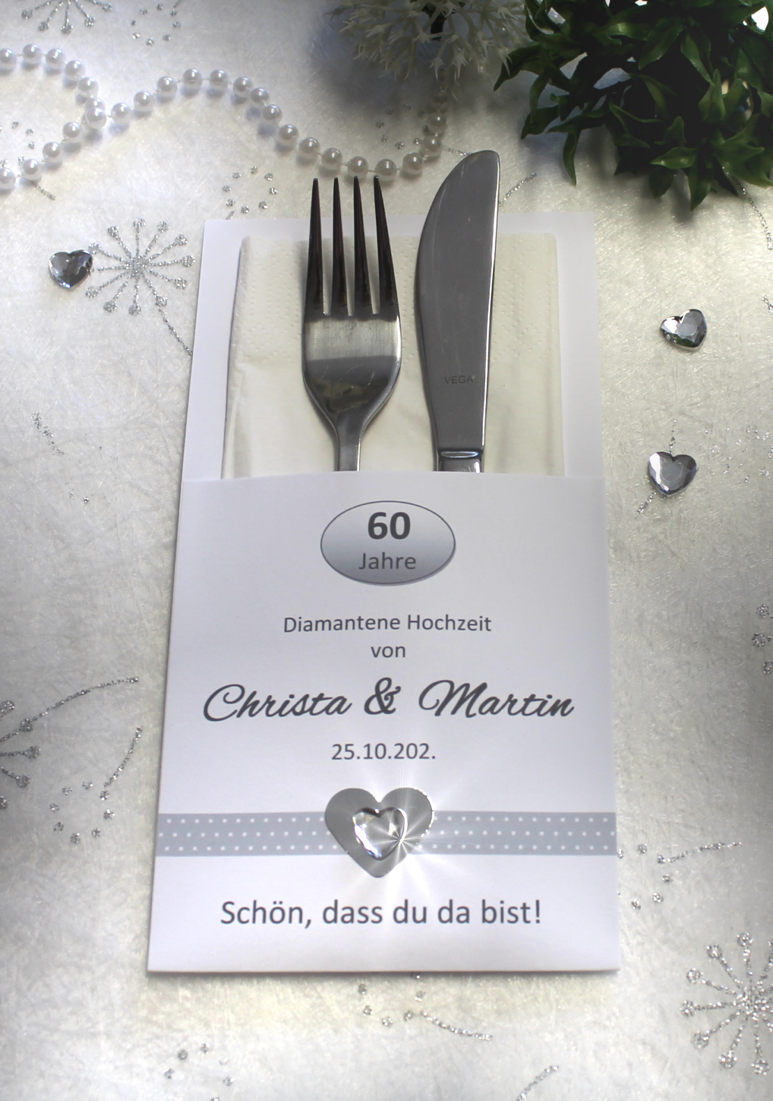 Bestecktasche, Bestecktasche Diamant Hochzeit, Diamant Hochzeit, Servietten, Tischdekoration