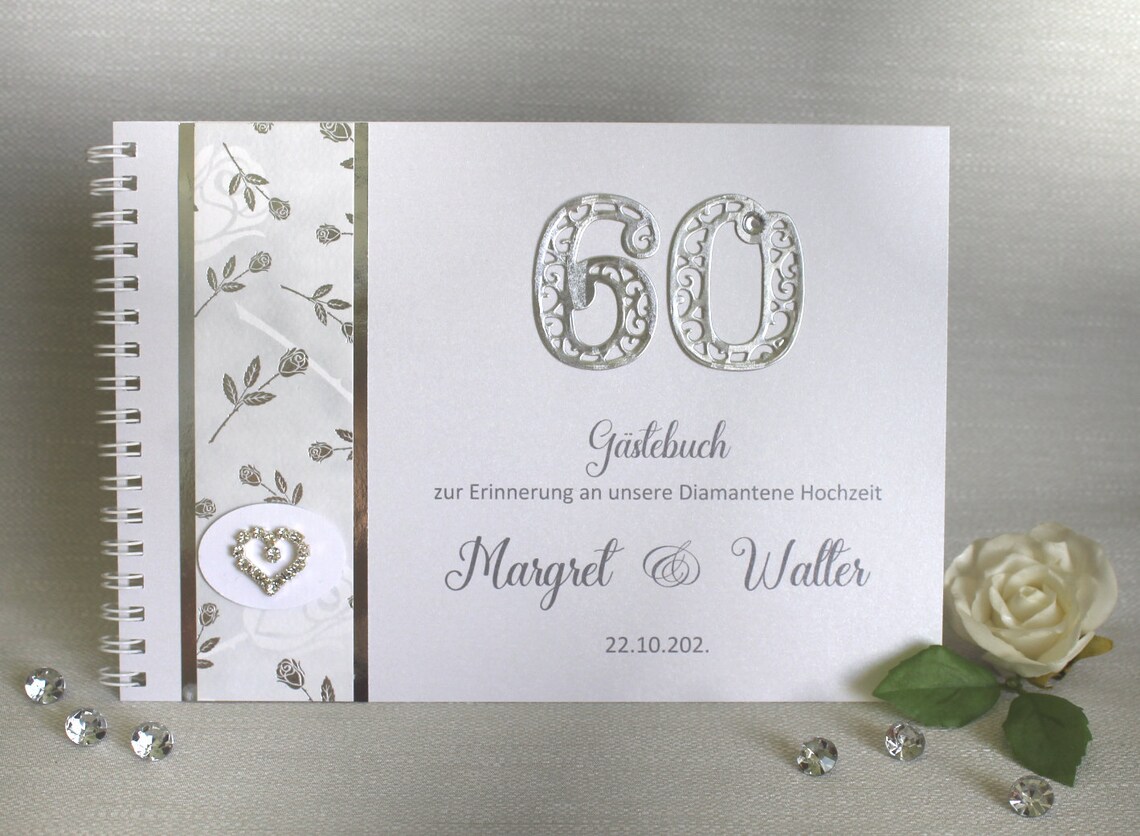 Feiere 60 Jahre Liebe, Erinnerungen und gemeinsame Momente mit einem ganz besonderen Highlight – unserem individuell gestalteten Gästebuch zur Diamantenen Hochzeit.