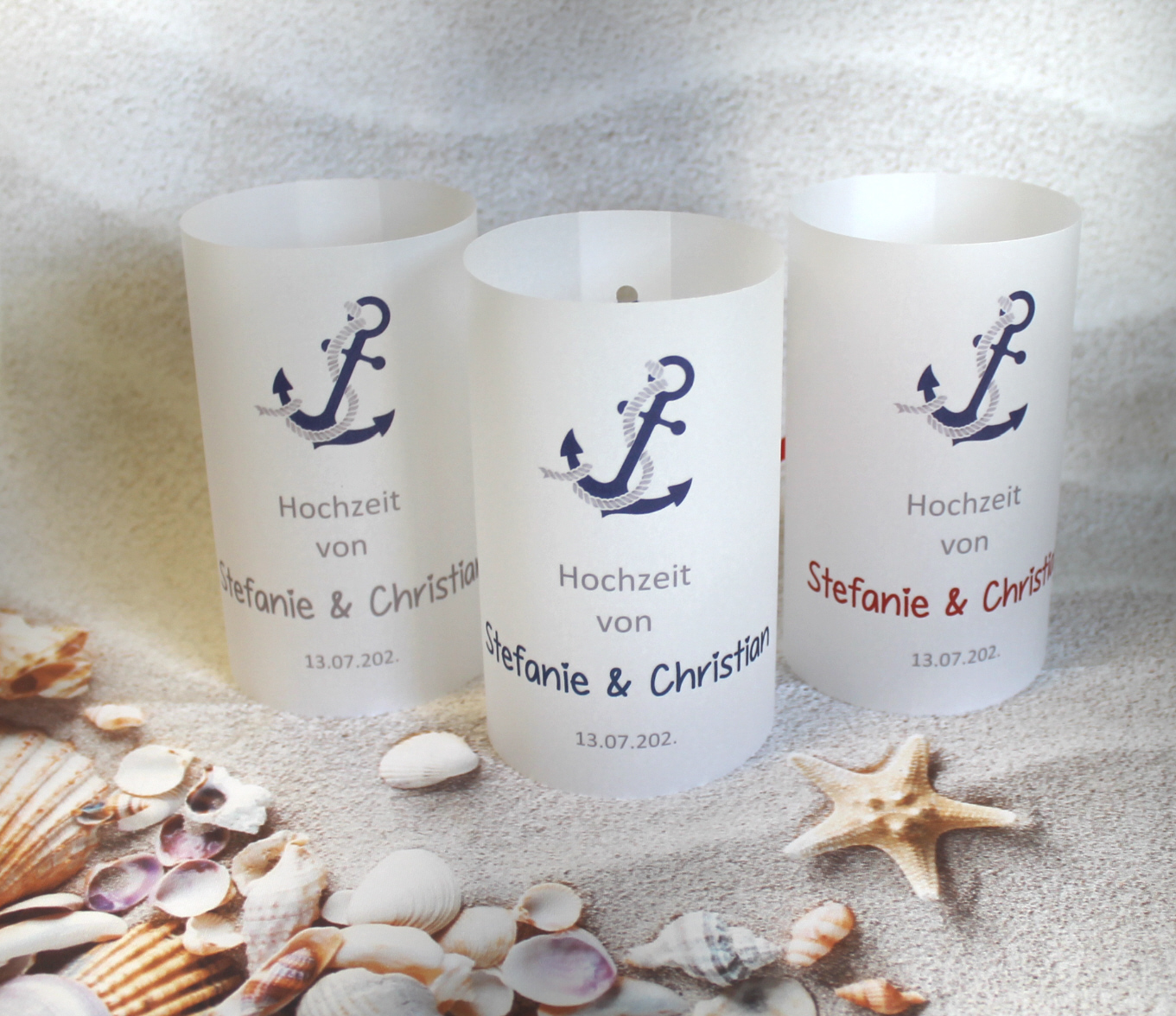 Windlicht zur Hochzeit "Anker Maritim" personalisiert, Design 414Windlicht zur Hochzeit „Anker Maritim“ personalisiert, Design 414