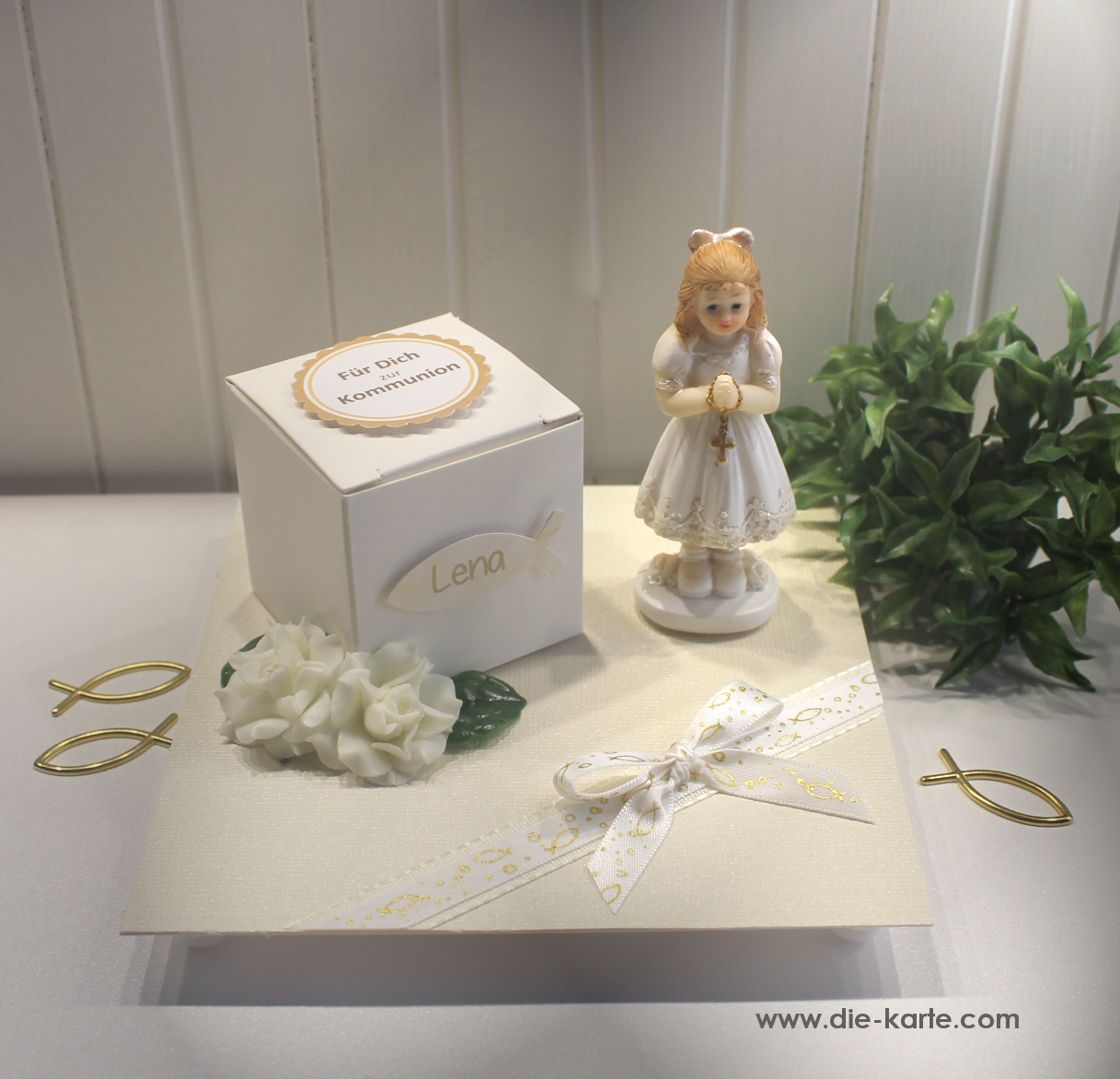 Mini Geschenkeschachtel zur Kommunion, Konfirmation oder Firmung – handgemachte Geldgeschenk-Verpackung mit Figur