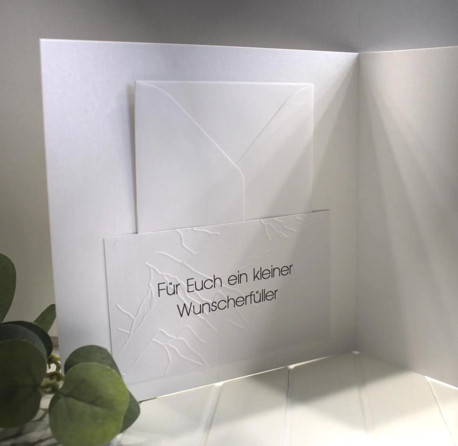 Auf Wunsch im Innenteil Einstecktasche mit kleinem Umschlag für ein Geldgeschenk!