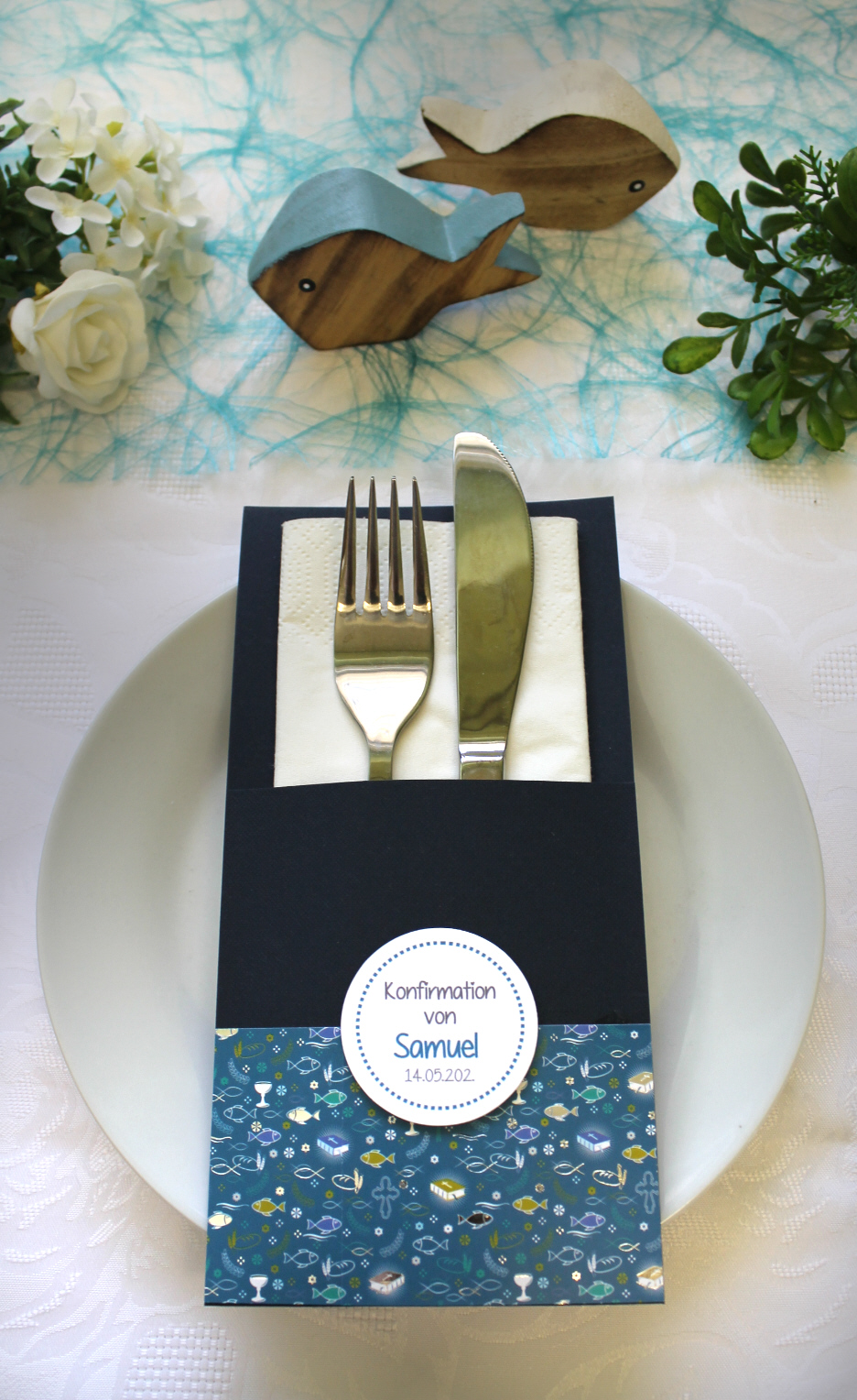 Unsere Bestecktaschen sind nicht nur ein elegantes Detail, sondern ein echter Blickfang auf jedem festlich gedeckten Tisch. Sie verbinden Stil und Funktionalität auf charmante Weise – ideal als Tischdekoration und zugleich als persönliches Highlight für Ihre Gäste. Jede Bestecktasche wird mit Liebe zum Detail gefertigt und kann perfekt mit dem Design Ihrer Gastgeschenk-Kerzen kombiniert werden. So entsteht ein harmonisches Gesamtbild auf Ihrer festlichen Tafel.