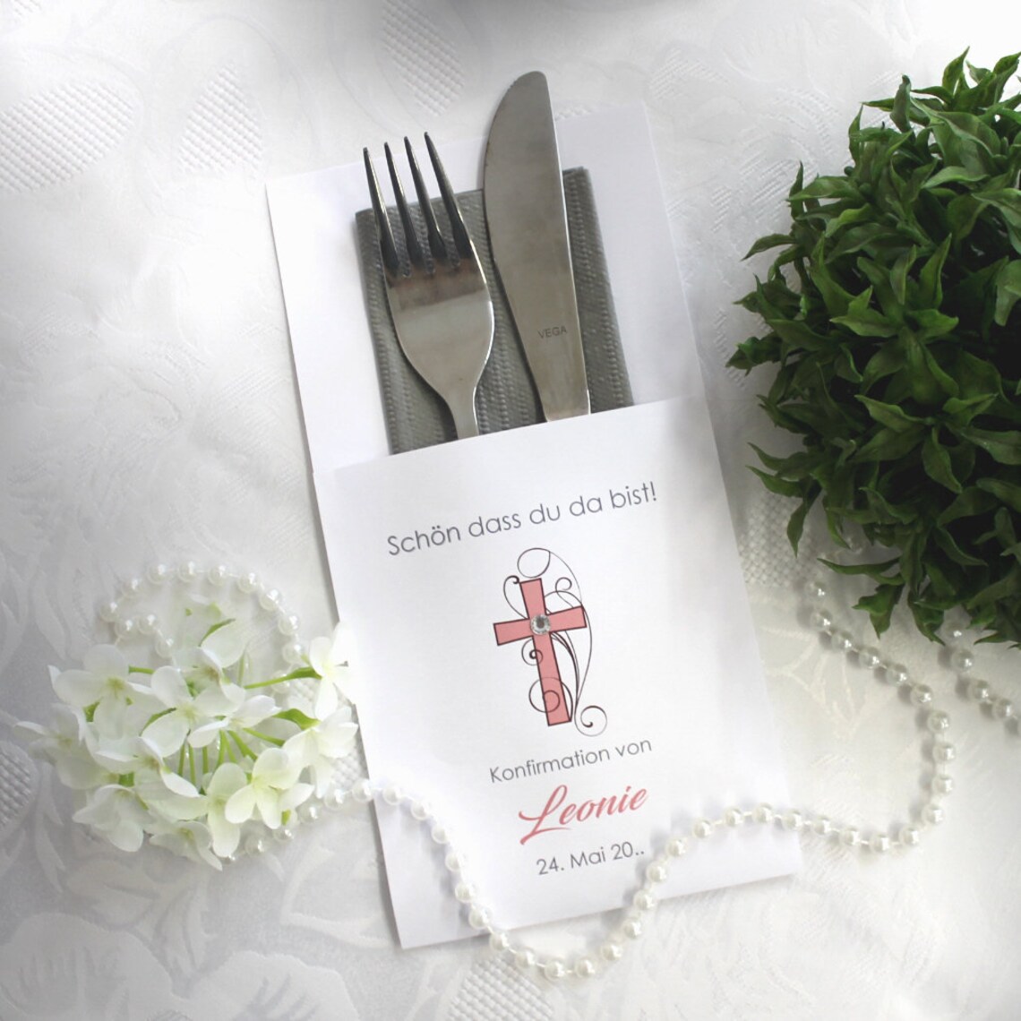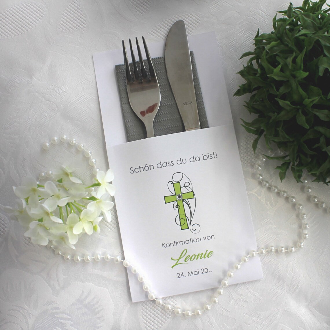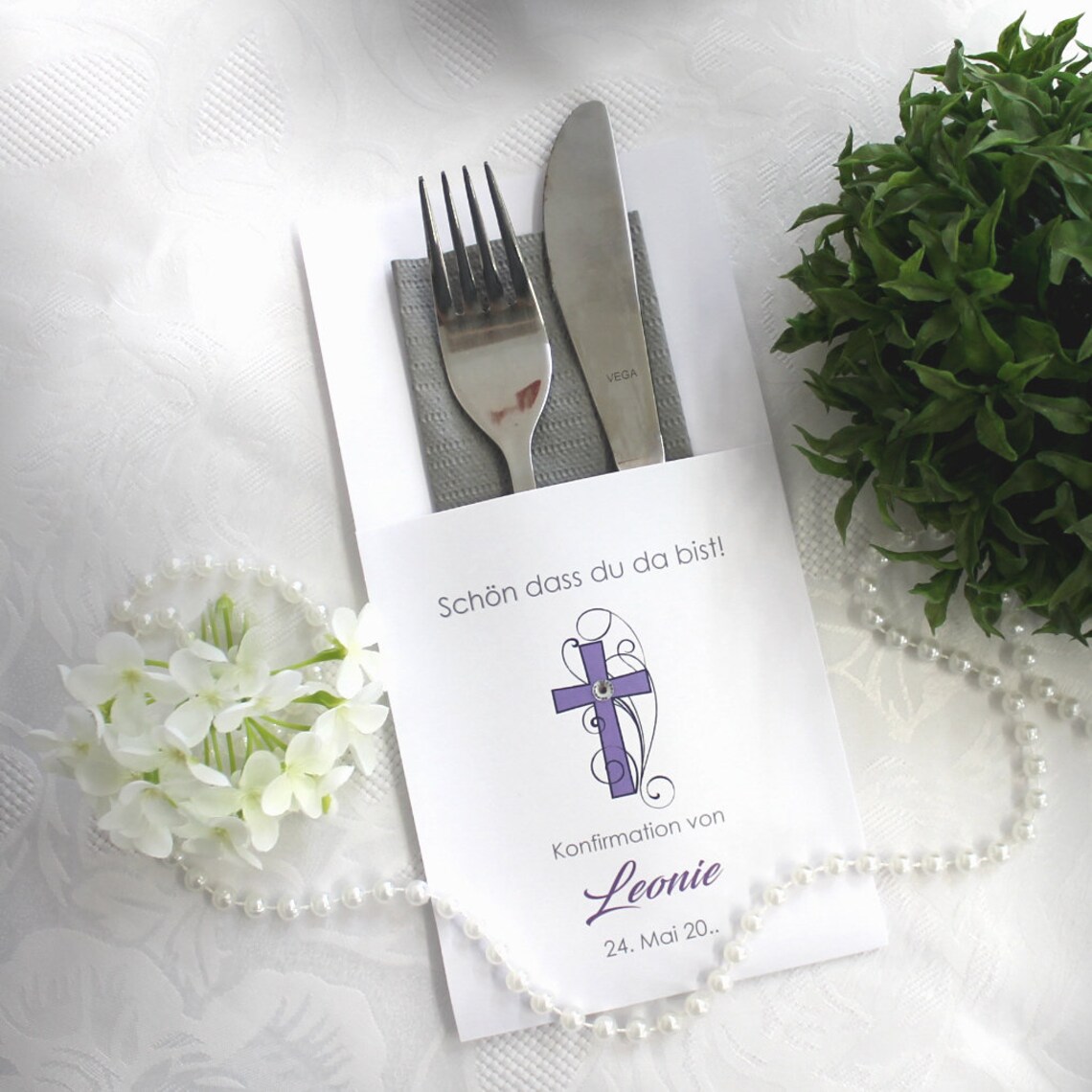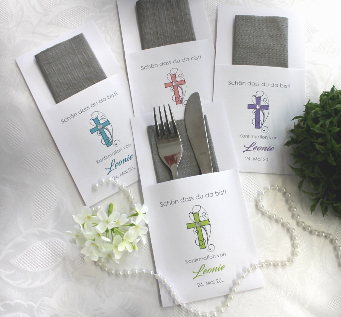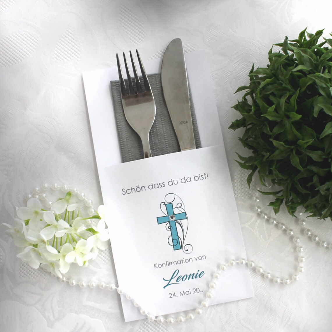 Unsere Bestecktaschen sind nicht nur ein elegantes Detail, sondern ein echter Blickfang auf jedem festlich gedeckten Tisch. Sie verbinden Stil und Funktionalität auf charmante Weise – ideal als Tischdekoration und zugleich als persönliches Highlight für Ihre Gäste. Jede Bestecktasche wird mit Liebe zum Detail gefertigt und kann perfekt mit dem Design Ihrer Gastgeschenk-Kerzen kombiniert werden. So entsteht ein harmonisches Gesamtbild auf Ihrer festlichen Tafel.