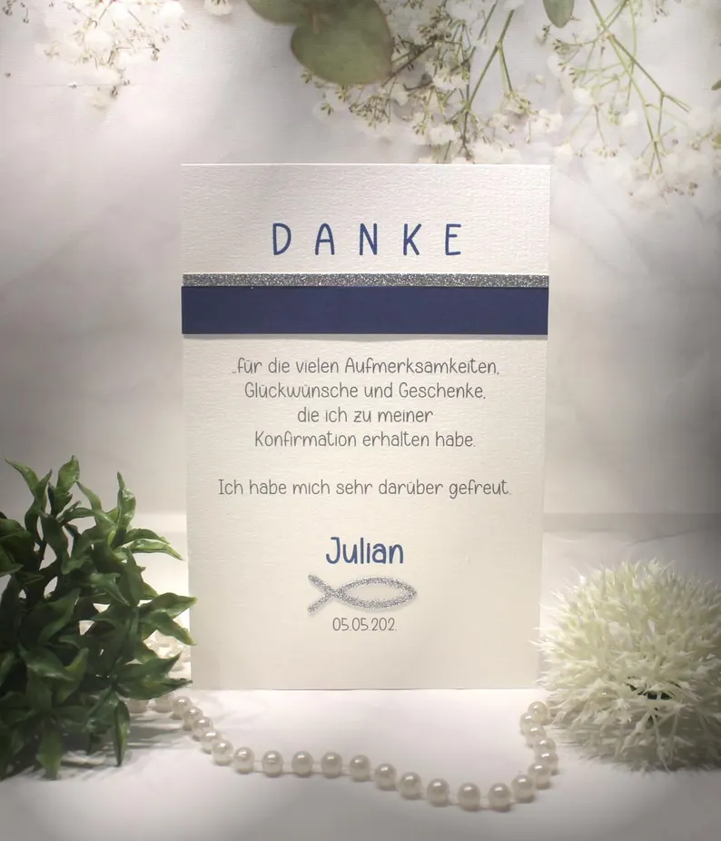 Diese liebevoll gestaltete Danksagungskarte ist schick und einzigartig zugleich – genau das Richtige, um sich stilvoll für einen besonderen Tag zu bedanken.