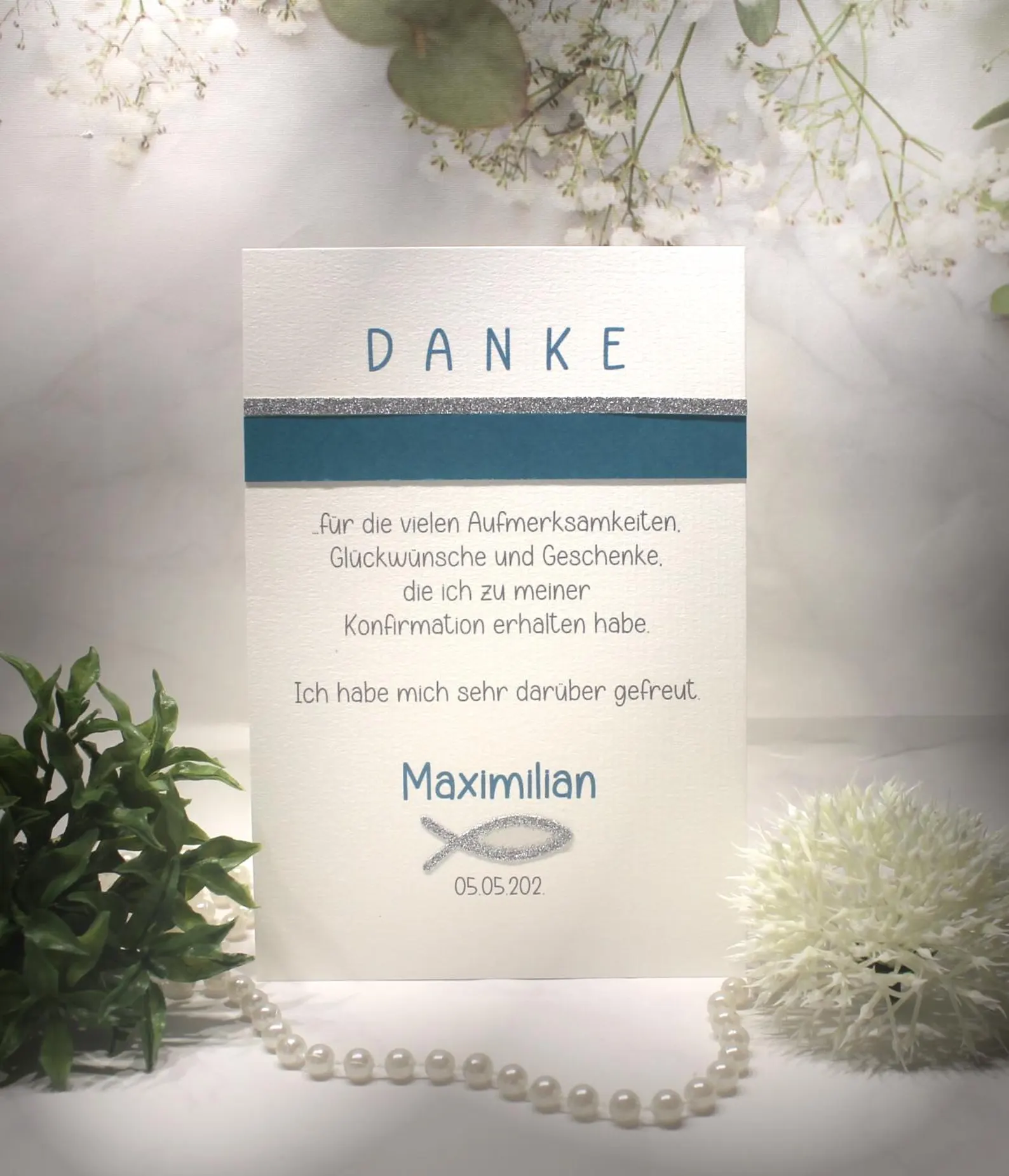 Diese liebevoll gestaltete Danksagungskarte ist schick und einzigartig zugleich – genau das Richtige, um sich stilvoll für einen besonderen Tag zu bedanken.