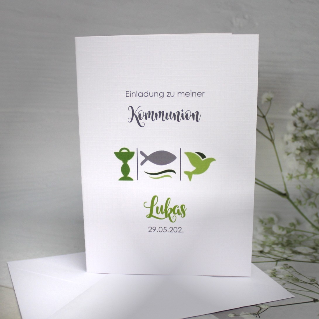 Einladungskarte Konfirmation, Einladung Kommunion, Einladungskarten günstig online kaufen, Einladungskarten mit Fischmotiv
