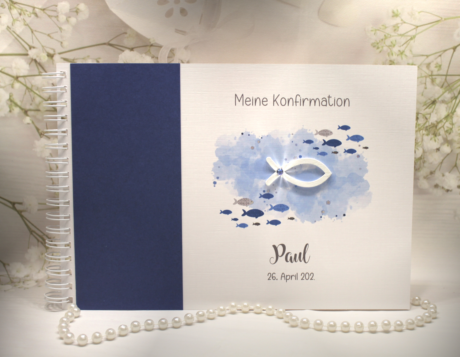 Gästebuch Konfirmation, Gästebuch Erinnerung, Gästebuch Kommunion, Gästebuch Taufe, Gästebuch Fisch