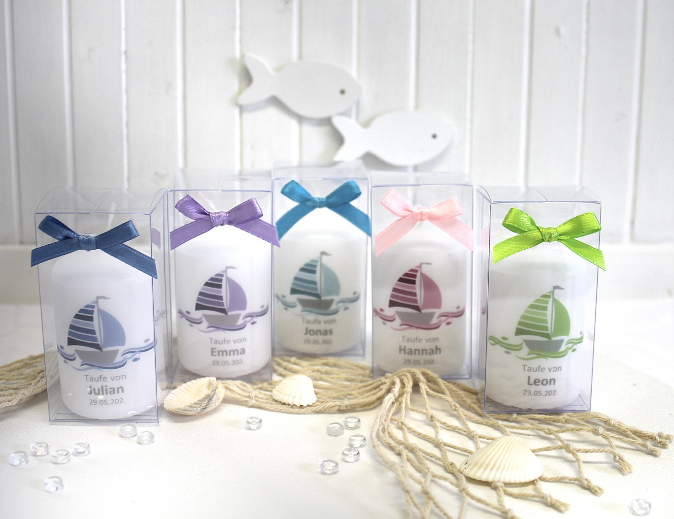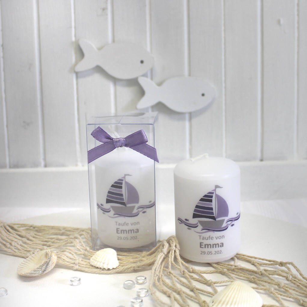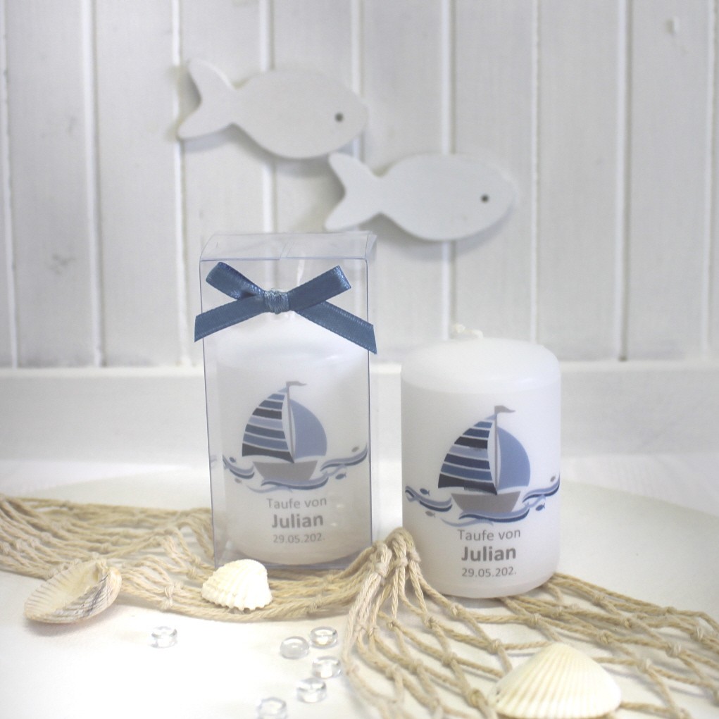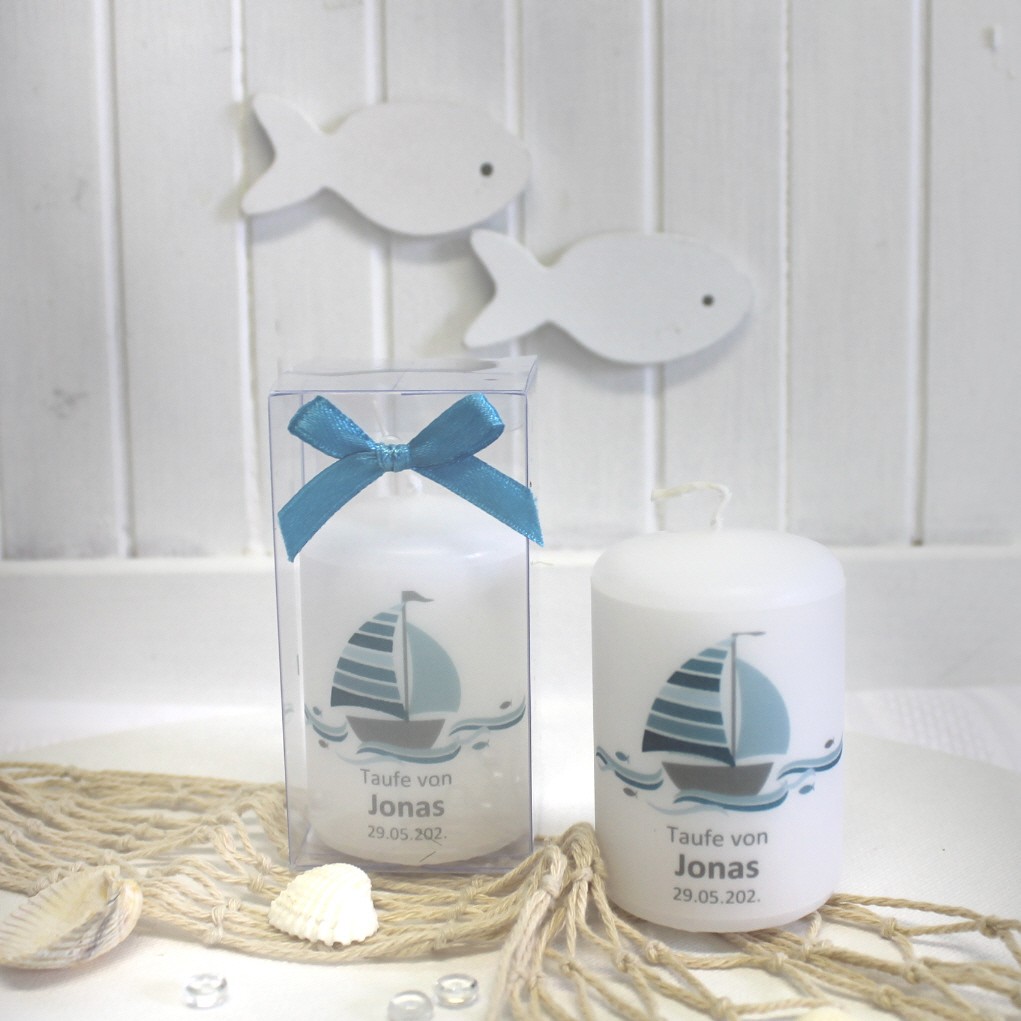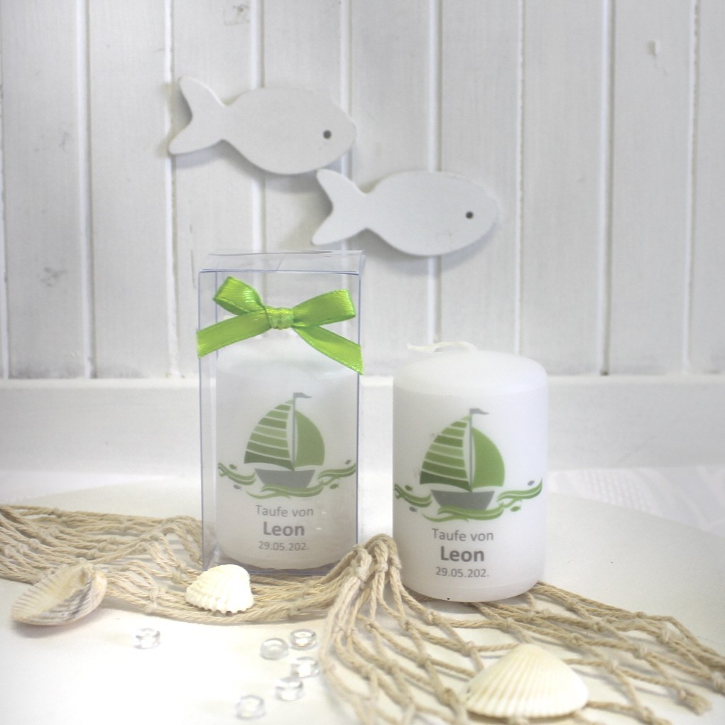 Jede Kerze wird mit einem feinen Pergamentband umlegt, das individuell mit Ihrem Anlass, den Namen und dem Festdatum bedruckt wird.