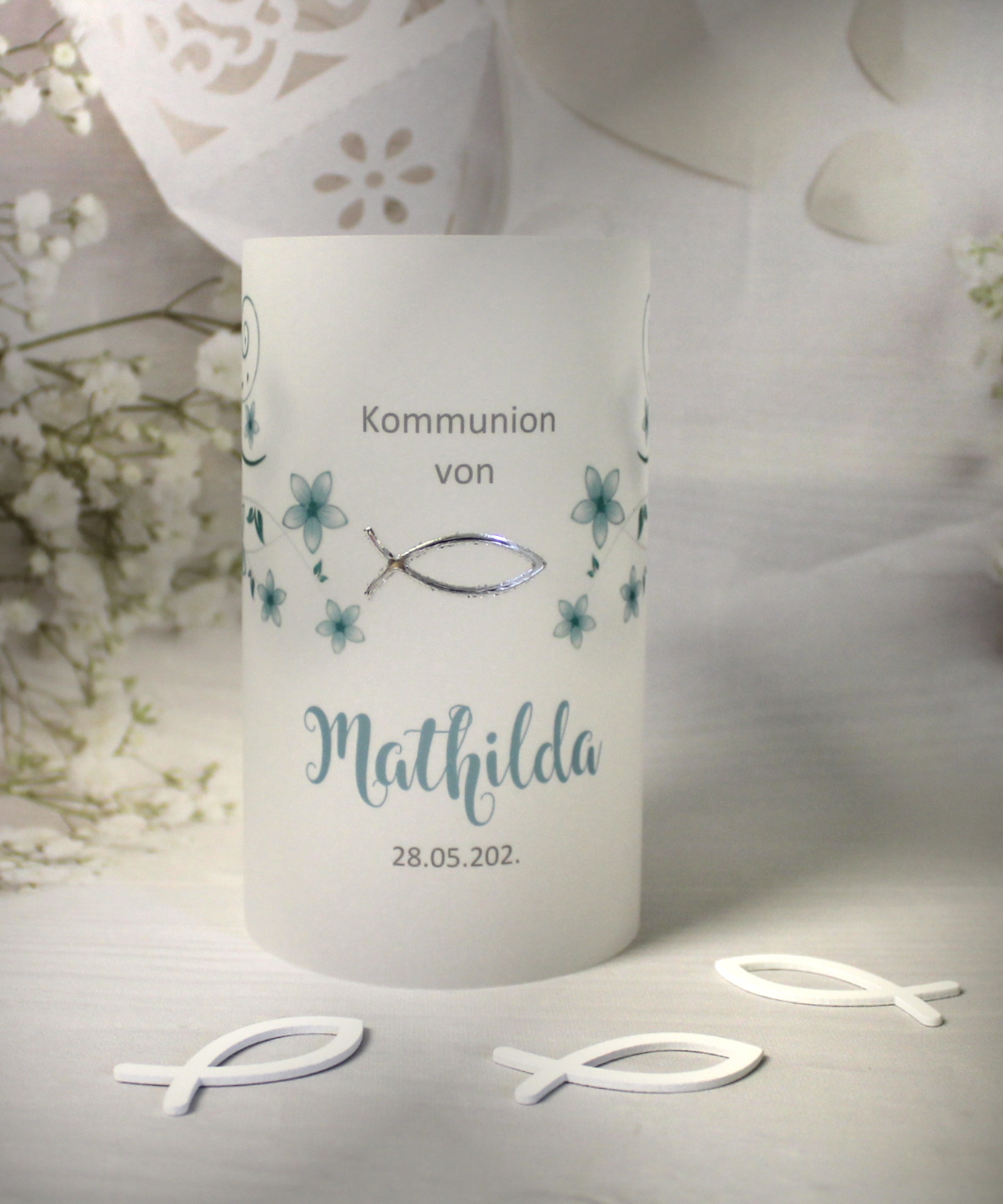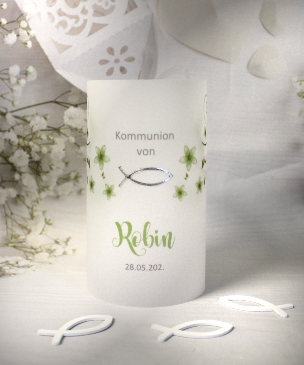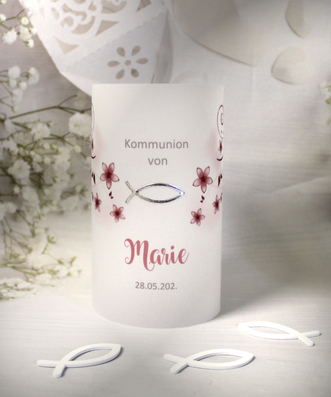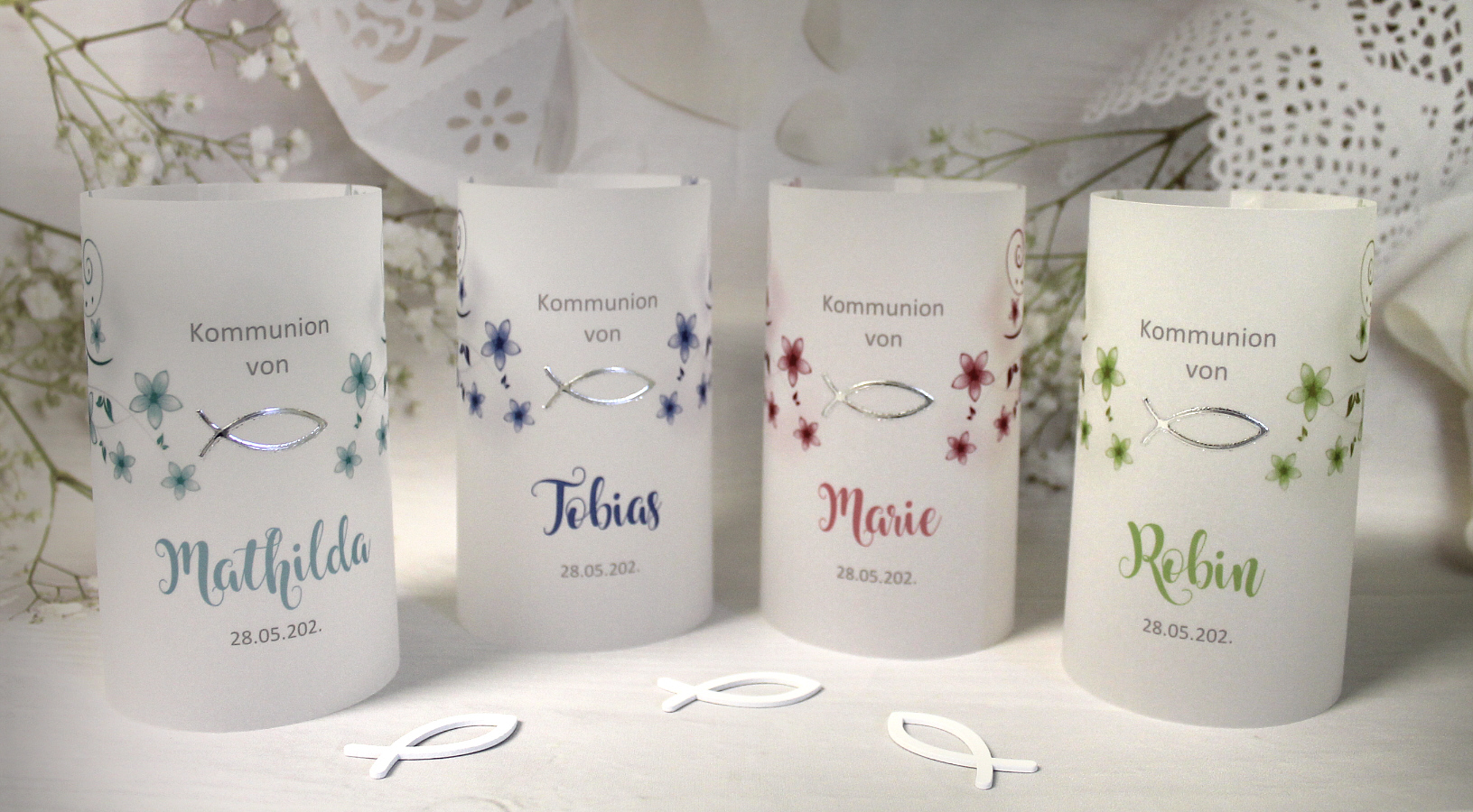 Unsere hochwertigen Windlichter aus feinem Pergament sind ein echter Blickfang auf jeder festlich gedeckten Tafel. Das sanft durchscheinende Material lässt das Kerzenlicht weich leuchten und sorgt für eine stilvolle Atmosphäre – perfekt fürIhre Konfirmation, Kommunion oder Firmung. Jedes Windlicht überzeugt durch seine schlichte Schönheit und die besondere Lichtwirkung, die jeden Raum in ein warmes, einladendes Ambiente taucht. Ob als einzelnes Highlight oder in Kombination mit anderen Dekorationselementen – diese Pergament-Windlichter verleihen jedem Anlass das gewisse Etwas.