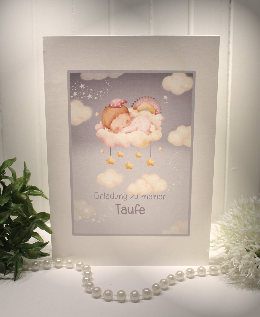 Schick und einzigartig zugleich. Einladungskarte für Ihre Taufe. Sie erhalten hier 10 Einladungskarten incl. Umschläge und Einlageblätter zu einem absoluten Top Preis. Design: Baby rosa Größe Karte - 14,8 x 10,5cm geschlossen - Papierstäke: 220 g/m2 Größe Umschlag - 16,0 x 12,0cm weiss, ohne Seidenfutter - incl. Einlegeblatt 14,3 x 20,5cm weiss zum bedrucken am PC Die auf dem Foto dargestellte Dekoration sind im Preis nicht inbergiffen.