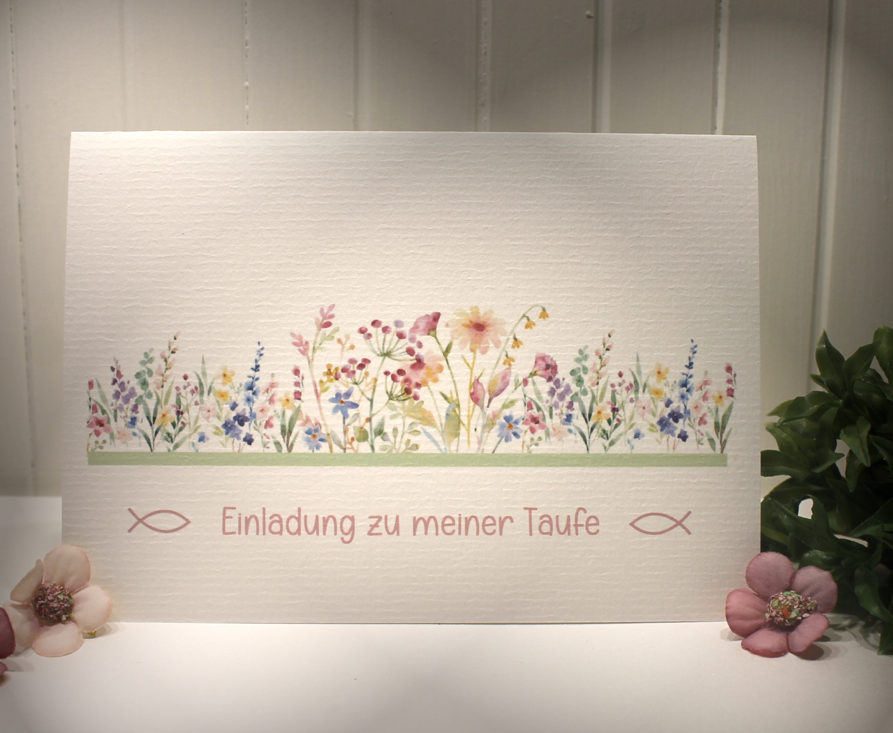 Einladungskarten 10 Stück „Blumenwiese“ für Ihre Taufe incl. Umschlag & Einlegeblatt zum kleinen Preis Design TA 12