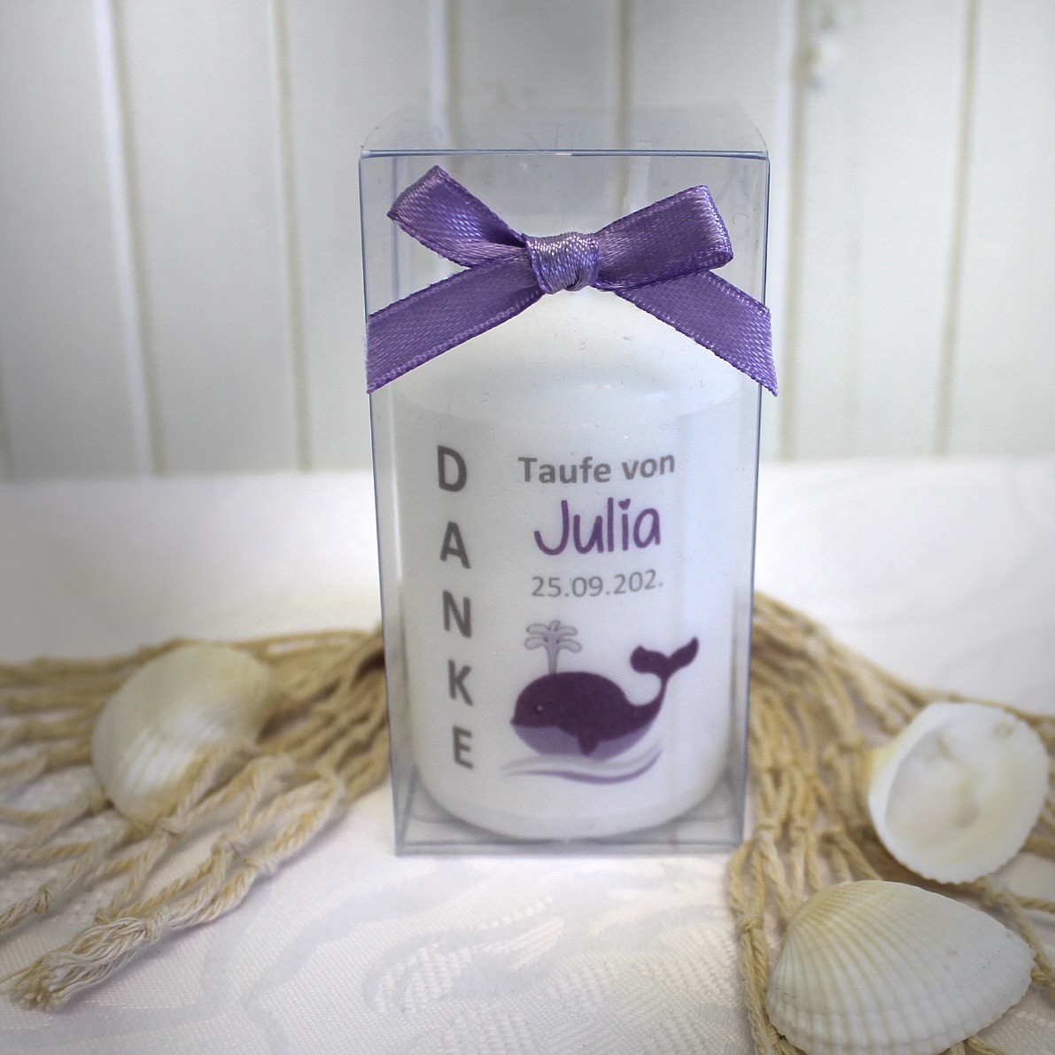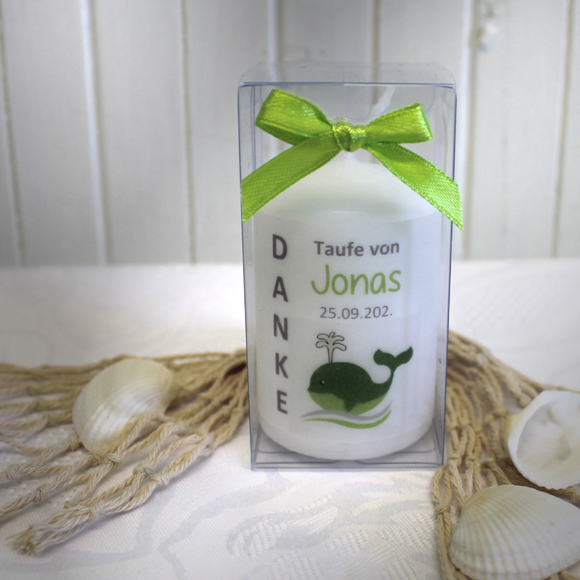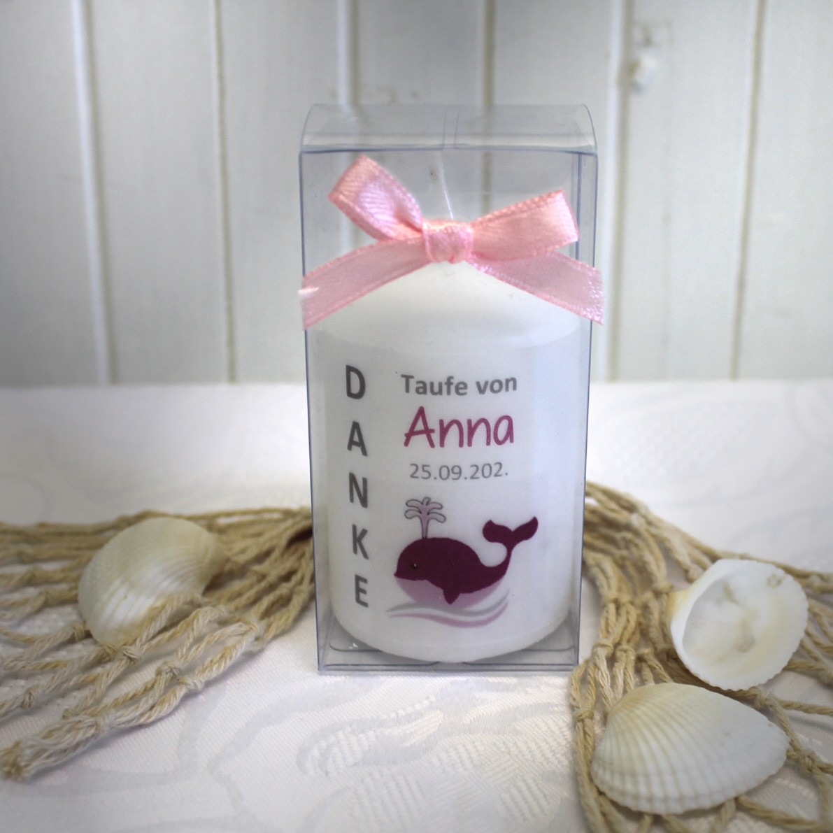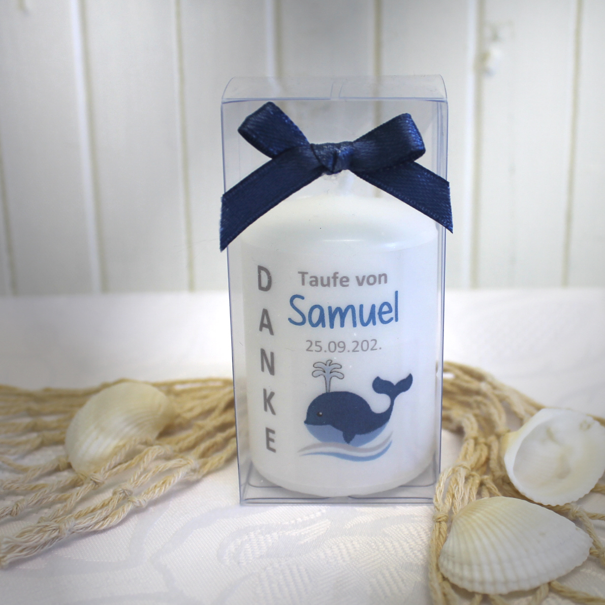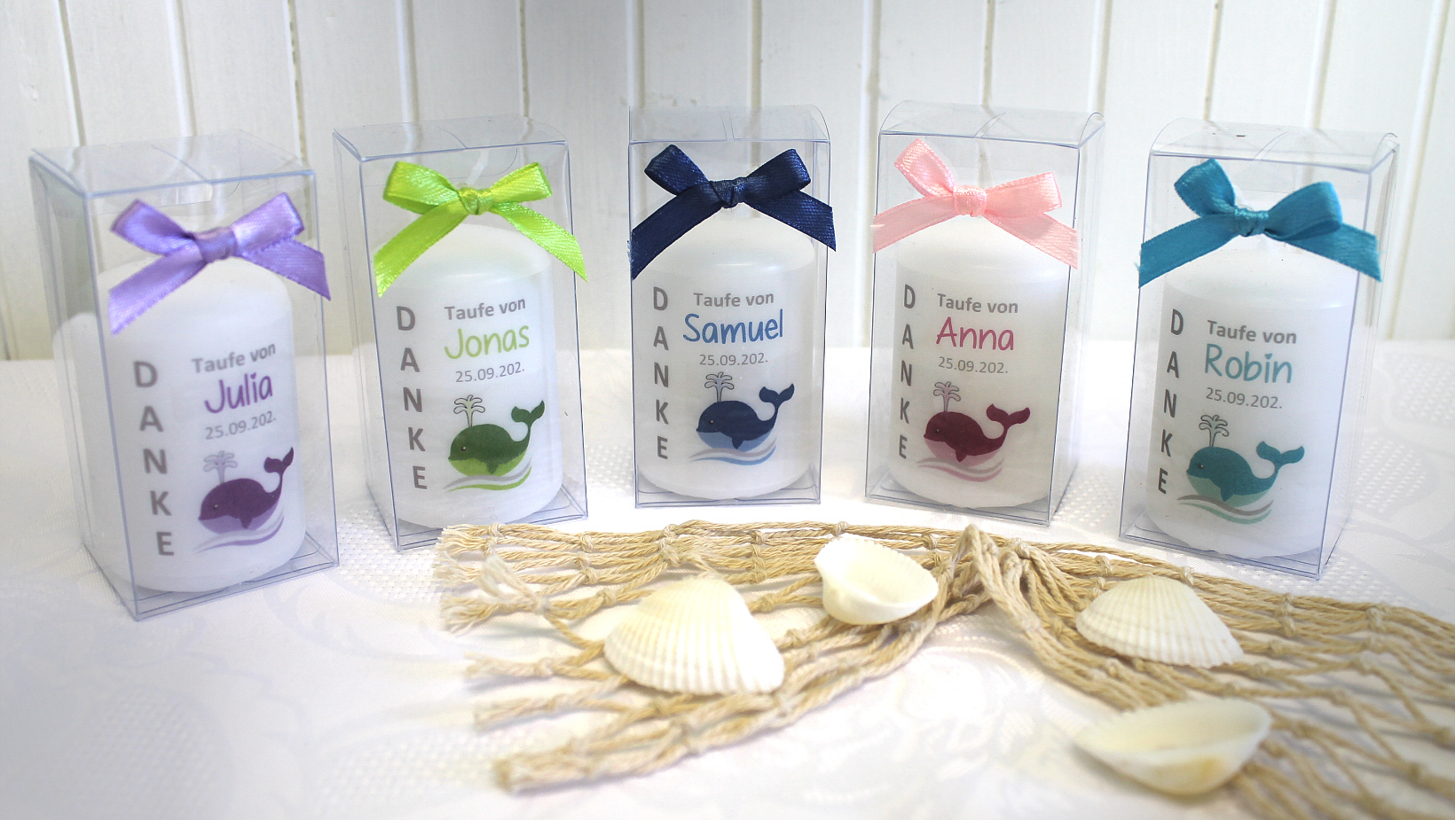 Jede Kerze wird mit einem feinen Pergamentband umlegt, das individuell mit Ihrem Anlass, den Namen und dem Festdatum bedruckt wird.