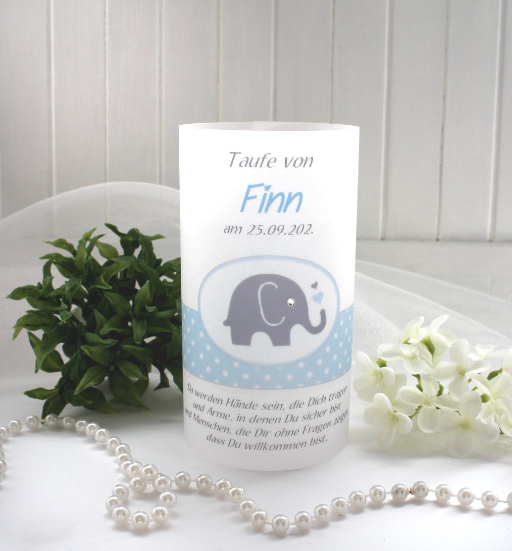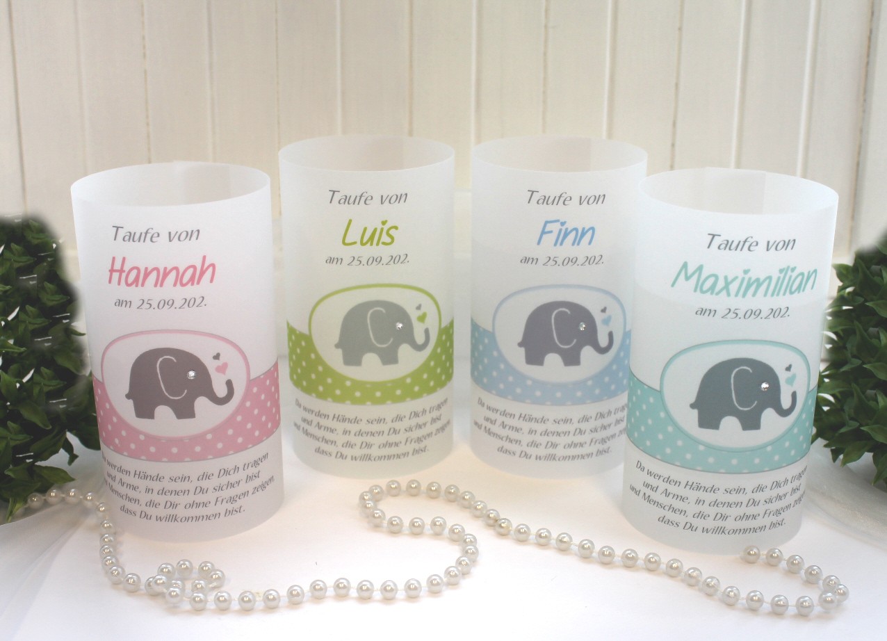 Unsere hochwertigen Windlichter aus feinem Pergament sind ein echter Blickfang auf jeder festlich gedeckten Tafel. Das sanft durchscheinende Material lässt das Kerzenlicht weich leuchten und sorgt für eine stilvolle Atmosphäre – perfekt für Ihre Taufe. Jedes Windlicht überzeugt durch seine schlichte Schönheit und die besondere Lichtwirkung, die jeden Raum in ein warmes, einladendes Ambiente taucht. Ob als einzelnes Highlight oder in Kombination mit anderen Dekorationselementen – diese Pergament-Windlichter verleihen jedem Anlass das gewisse Etwas.